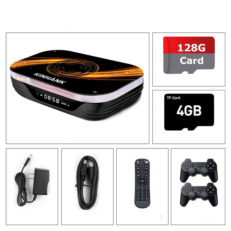 Retro Game Game Console with 114,000+ games is the latest three-system game console + TV BOX, which integrates EmuELEC 4.5 game system, Android and CoreELEC high-definition audio and video system.